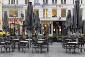 这是11月22日在奥地利首都维也纳拍摄的一条商业步行街上关闭的咖啡馆。(新华社记者 郭晨 摄)