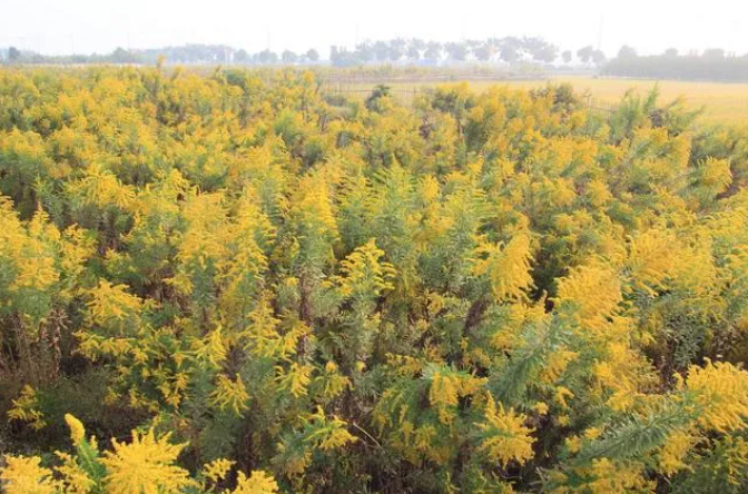 为啥?因为它是名副其实的“我花开后百花杀”:繁殖能力惊人,与周遭植物抢阳光肥料,无论是庄稼还是野草,都干不过它。这么狠的植物还是个外来物种,它从北美漂洋过海而来,名唤“加拿大一枝黄花”。