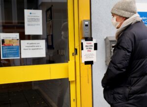 11月25日,一名戴口罩的男子前往英国伦敦一家诊所。(新华社记者李颖摄)