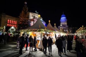 11月22日,德国首都柏林,人们在宪兵广场逛圣诞市场。(新华社发,斯特凡·蔡茨摄)