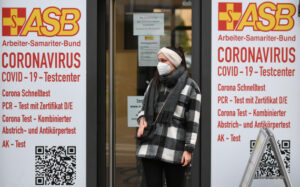 12月3日,一名女子从德国法兰克福一处新冠检测点离开。德国联邦与各州政府2日达成协议,加强针对未接种新冠疫苗者的社交限制,以遏制该国第四波疫情蔓延。(新华社记者逯阳摄)