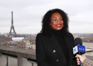 12月15日,在法国巴黎联合国教科文组织总部,法国前体育部部长、击剑项目奥运会冠军劳拉·弗莱赛尔接受新华社记者专访。新华社记者高静摄
