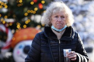 12月9日,一名女子在法国巴黎一家圣诞市场边走边喝热红酒。新华社记者高静摄