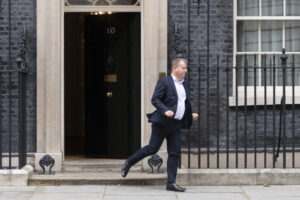 2020年9月8日,在英国伦敦,“脱欧”英方首席谈判代表戴维·弗罗斯特离开首相府。(新华社发,雷伊·唐摄)