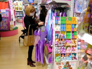 12月18日,一名女子在法国南部城市尼斯一家玩具店选购。(新华社发,塞尔热·阿乌齐摄)
