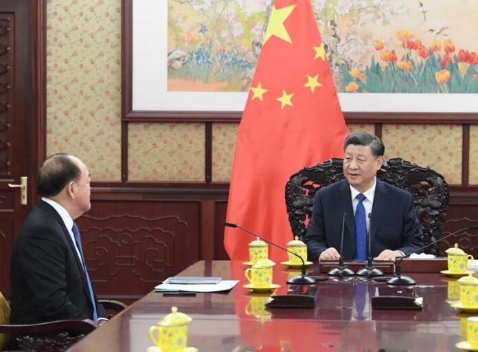 12月22日,国家主席习近平在中南海会见来京述职的澳门特别行政区行政长官贺一诚。新华社记者 申宏 摄