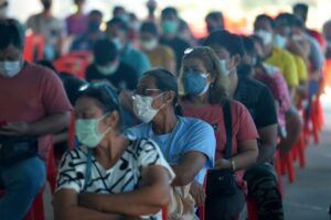12月21日,人们在泰国曼谷的一处新冠疫苗接种点等待接种疫苗。(新华社发,拉亨摄)