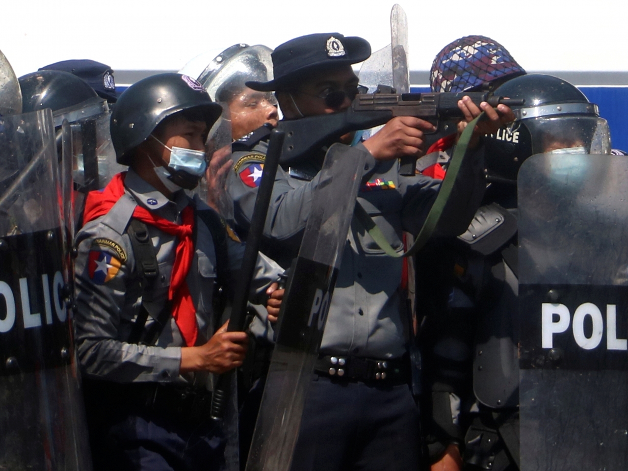 緬甸全國昨日多處繼續有民眾示威,其中在首都內比都,警方向天鳴槍及發射水砲驅散示威人群,最少4人懷疑被橡膠子彈擊傷,據報1名女示威者頭部中槍,醫生表示,X光顯示她是遭到實彈射擊,情況危殆。國營電視台報道,有警員在驅散行動期間受傷,是當局首次承認當地發生示威。