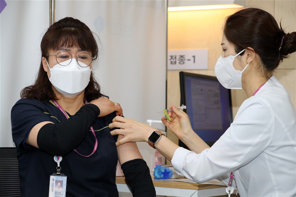 為韓國民眾站在防疫第一線的醫療人員27日開始接種美國輝瑞大藥廠(Pfizer)與德國BioNTech合作開發的疫苗,首日規劃300人接種。