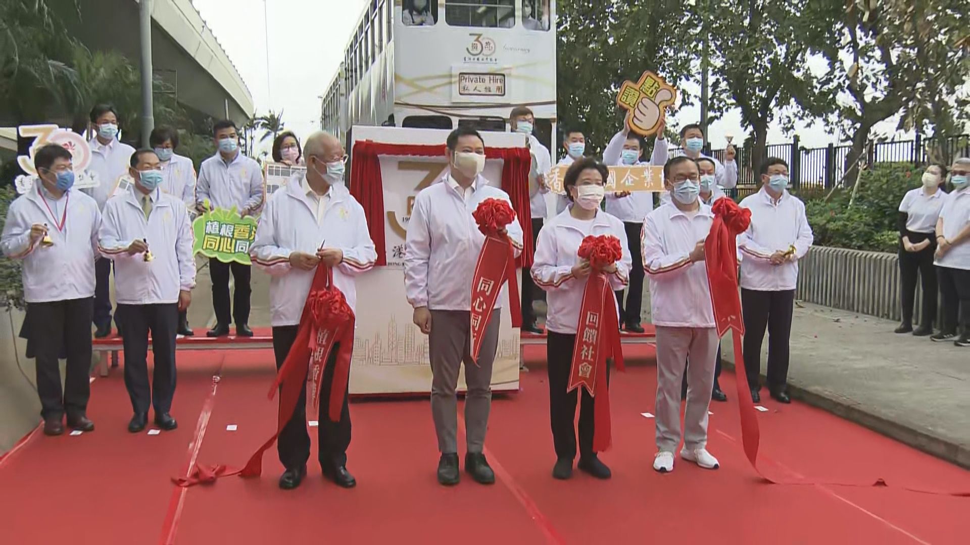 民政事務局局長徐英偉及中聯辦副主任仇鴻出席香港中國企業協會活動啟動禮,香港中國企業協會為慶祝協會成立30周年,推出電車公眾免費乘車日活動,市民今日可免費坐電車。