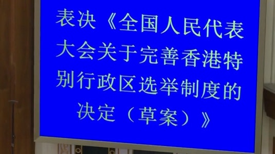 全國人大會議閉幕。全國人大會議以高票表決通過完善香港選舉制度的決定。