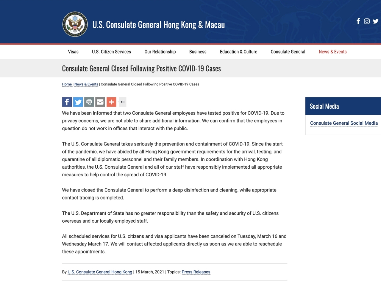 至於初步確診就有十多宗,包括兩名美國駐港澳總領事館人員。衞生防護中心表示,如果兩人確診,美領館所有工作人員都要強制檢測。