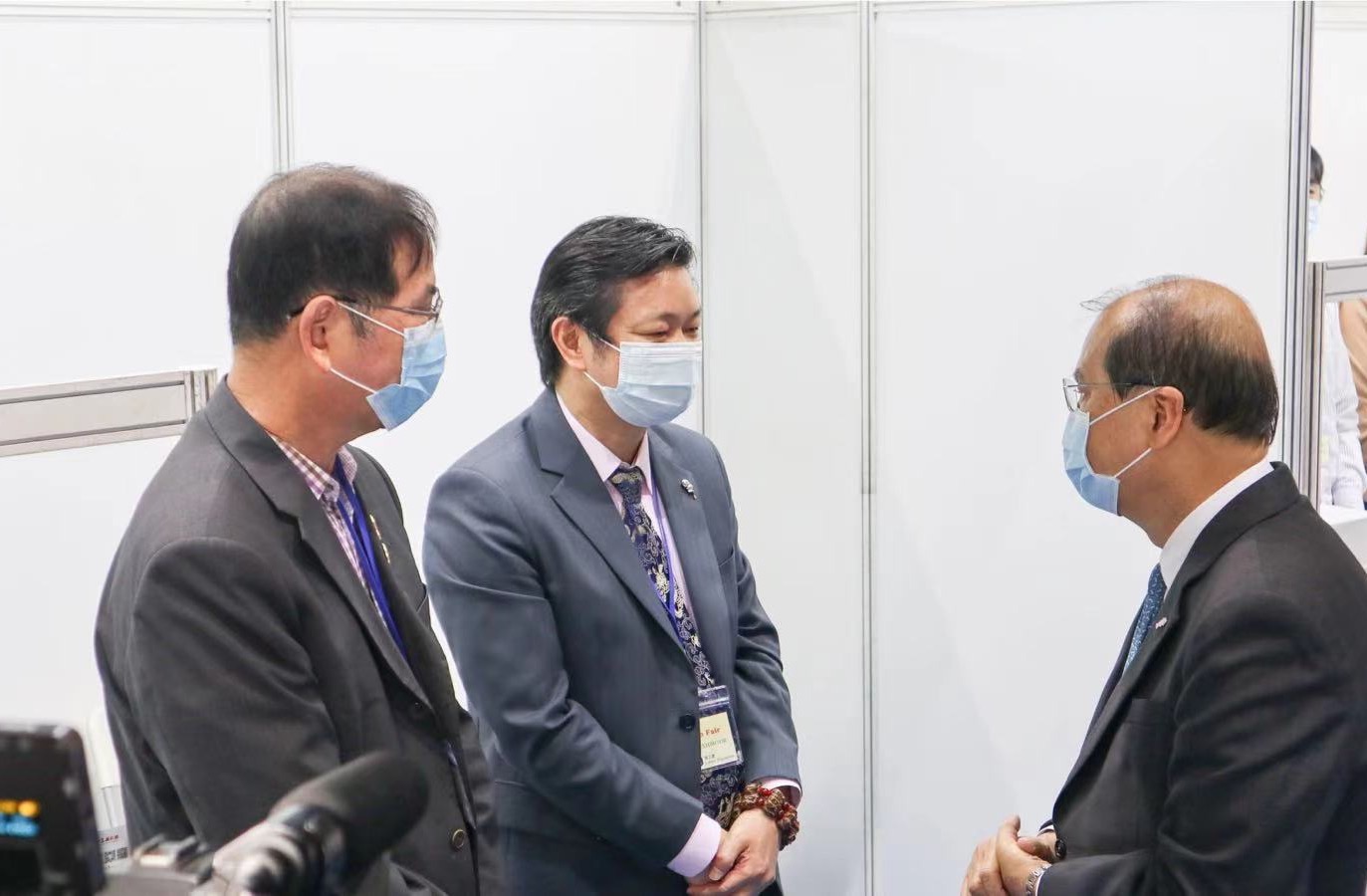 24日下午,香港特區政府勞工及福利局局長羅致光博士也來到招聘博覽現場視察。