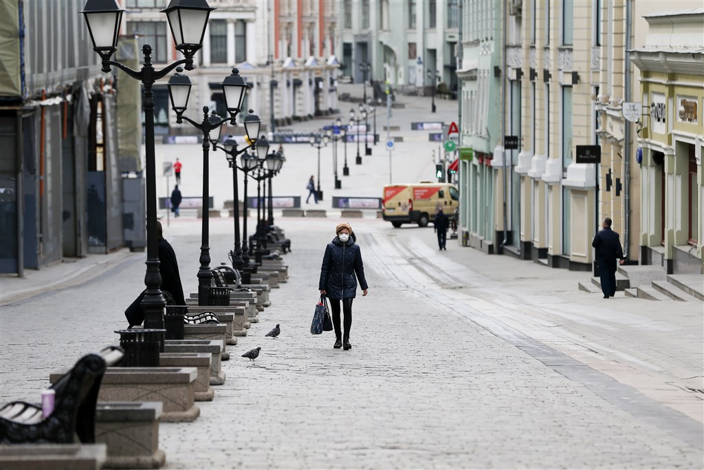 俄羅斯24日通報新增8861起確診病例,包括莫斯科的1431例,使全國染疫總數來到448萬3471例。圖為莫斯科街道上人煙稀少。(安納杜魯新聞社)
