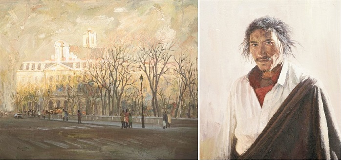 特別是他受奧地利聯邦總理府邀請赴該國進行藝術交流訪問之後,他的畫風似乎出現了一個全新的境界,藝術造詣達到了一個可以讓人敬仰的維度。如果用詩學的角度看,更是一種至高的「心象之作」。像《巴黎街景》《巴黎街景二》《塞納河畔》《巴黎市政廳之二》《維也納郊外之二》《郊外》一組作品。牠們如一首首餘味不盡的朦朧詩篇,以結實的語彙述說著心靈的憬悟和情感的驛動,似夢非夢,是象非象,將客觀之象通過厚重的油彩與恰到好處的光線感覺與處理,賦予了只有昇華才能完成的血肉豐沛的心象。看似信手間實現的這些「心靈意象」,帶給人的卻是難以忘懷的溫馨體驗和律動。在此,我們也深切驚悟到了他所具有的那種強勁的創造天賦。