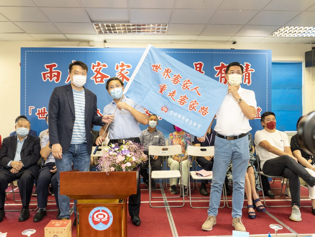 香港中聯辦台務部部長楊流昌先生、副部長肖洪先生為“世界客家人 重走客家路”籌備啟動禮授旗、為上水廖萬石堂客家文化交流展示基地授牌。