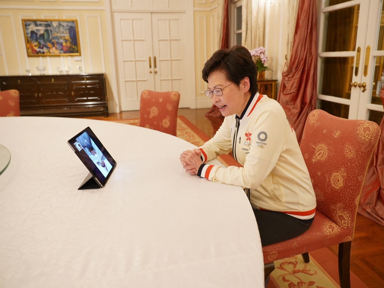 行政長官林鄭月娥與奪得東京奧運金牌的港隊劍擊代表張家朗視像通話,親自送上祝賀,希望張家朗與隊友在團體賽有同樣高水準的發揮。