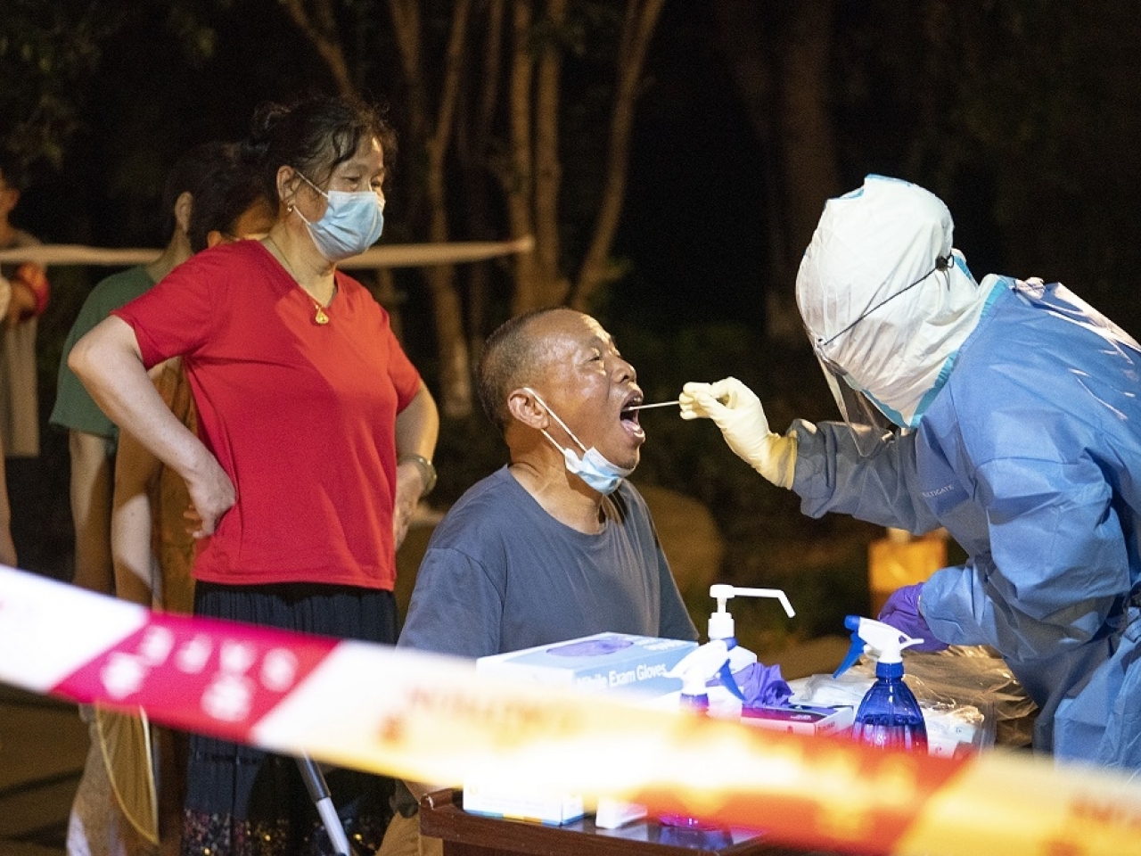 武漢開展全市核酸檢測 ,市民昨晚在東湖風景區華僑城社區檢測點接受採樣。(新華社)