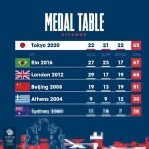 中华时报英国讯(王北方 Andrew Wiggins 赵雪湄)本届奥运会英国共获得65枚奖牌,与2012年伦敦奥运会相同,共有22金、21银、22铜,排在奖牌榜的第四位,仅次于美国、中国和东道主日本。