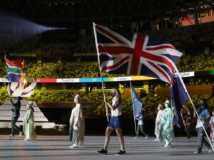 劳拉·肯尼(Laura Kenny)作为闭幕式旗手带领英国队参加了东京奥运会的闭幕式。