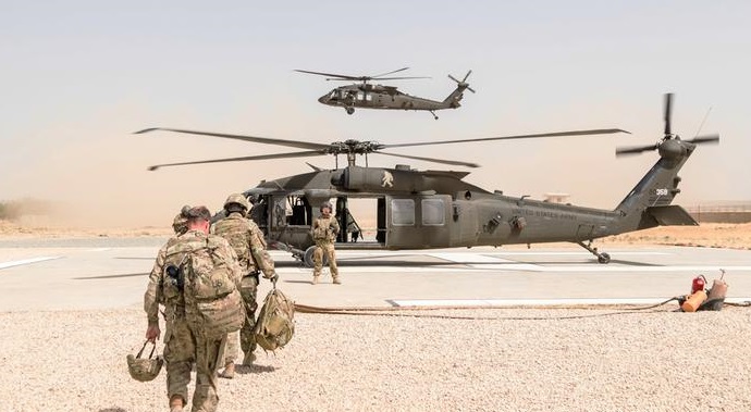 失去了空中支援,阿富汗政府军的战斗力大打折扣。图为驻阿美军的黑鹰直升机(资料图)。