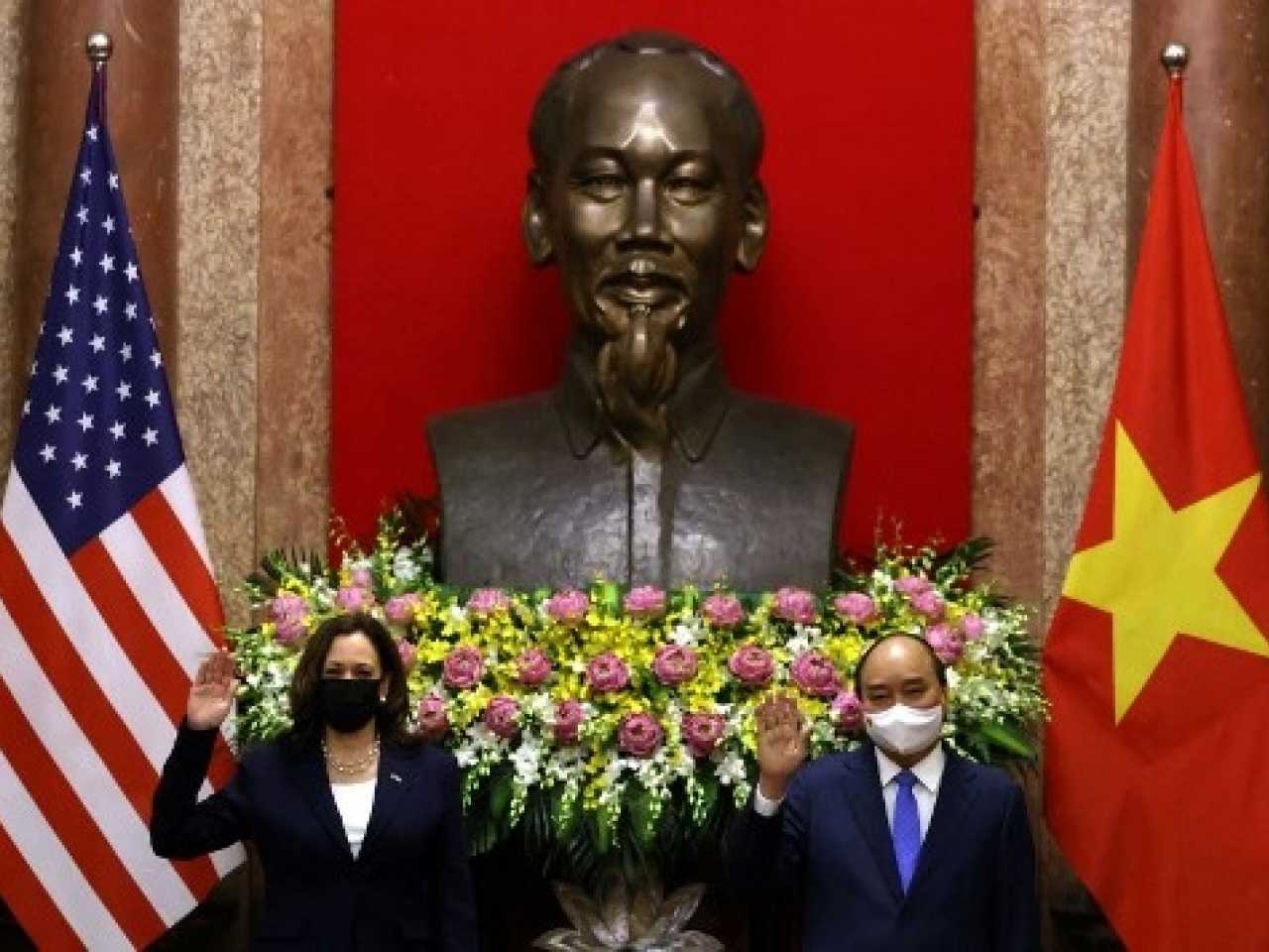 (中华新闻通讯社讯)正在越南河内访问的美国副总统贺锦丽,会见越南总统阮春福。贺锦丽发言时,再度批评北京政府欺负东南亚邻国,强调有必要就北京在南海的军事扩张,向北京加强施压,迫使北京遵守《联合国海洋法公约》,并挑战中方在南海的过度主张。