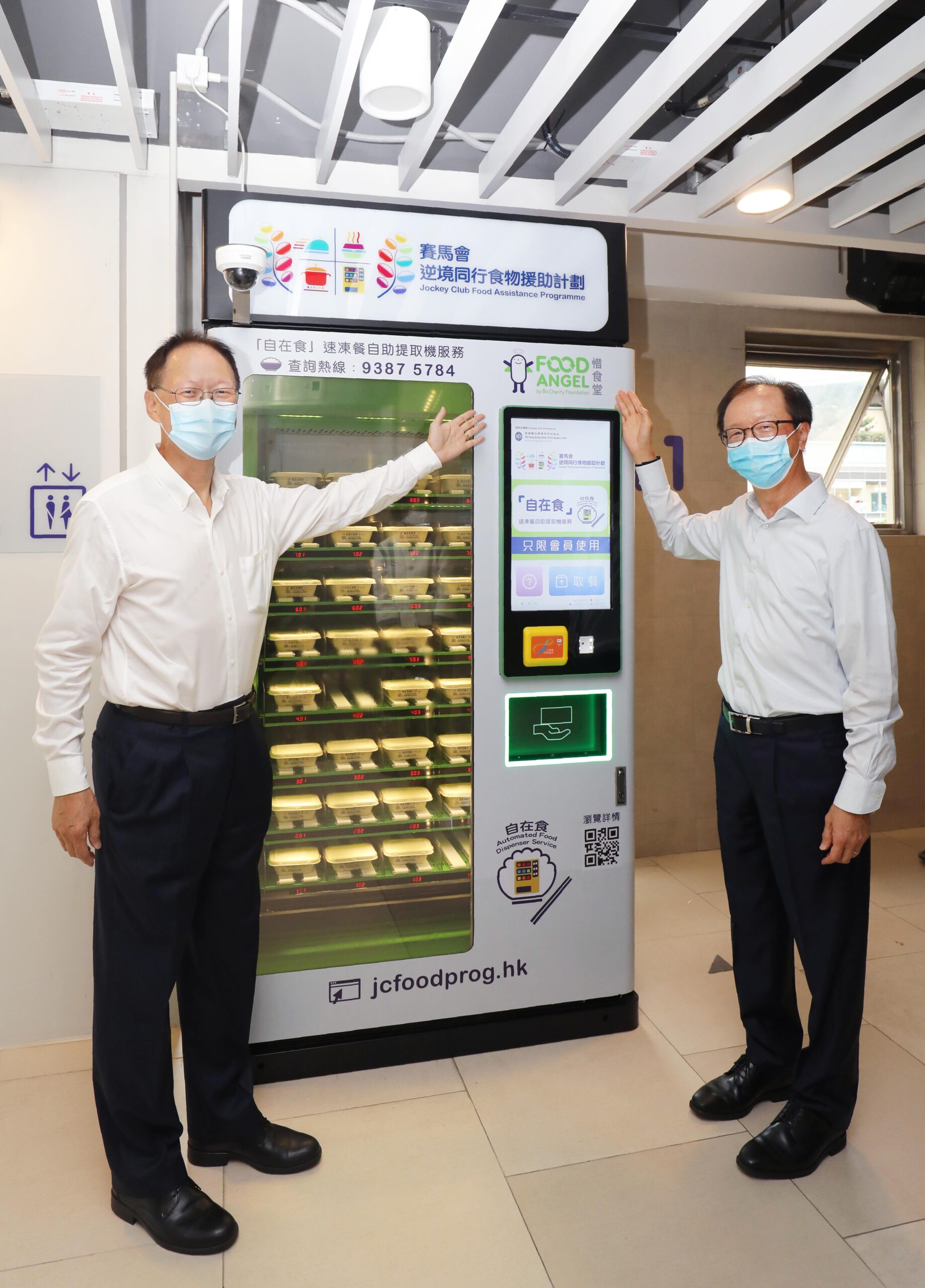 早前,香港賽馬會主席陳南祿先生、馬會董事及遴選會員,親臨惜食堂了解「賽馬會逆境同行食物援助計劃」的內容,並由惜食堂主席梁錦松先生陪同下參觀「自在食」速凍餐自助提取機。