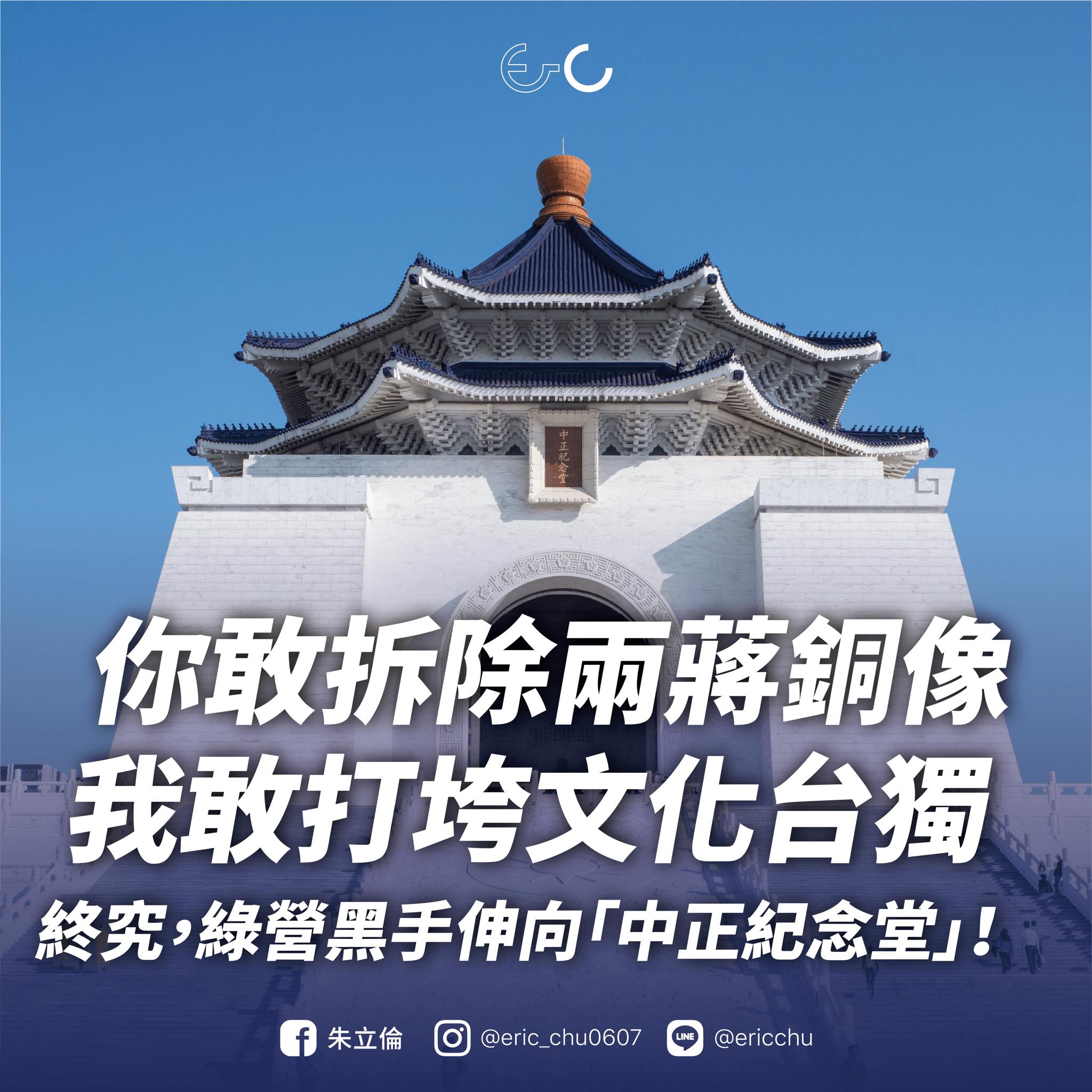 朱立倫指出,他要質問民進黨與促轉會,「你們有惡膽想方設法拆除銅像」,那有沒有決心敢抹去兩蔣為台灣奮鬥的一切痕跡,要不要拆除金門烈嶼的八二三砲戰勝利紀念碑、拆除手機裡的台積電晶片、拆除中山高速公路、終止中鋼冶煉、拆除桃園國際機場。