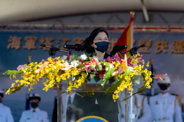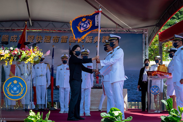 台湾总统蔡英文主持塔江舰成军典礼。(总统府提供)