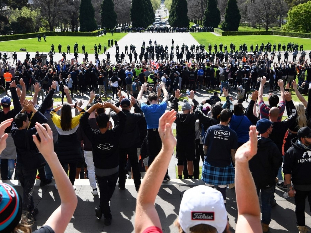 維州首府墨爾本連續三日有人示威,抗議當局強制建築工人接種疫苗,並關閉工地。幾百名示威者在市中心聚集,警方嚴陣以待,防範暴力事件重演,拘捕多人。