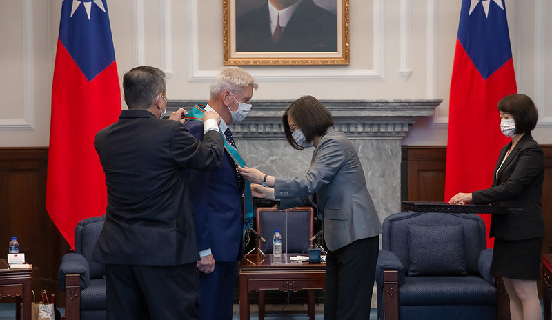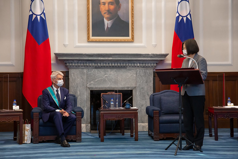 蔡英文致詞時回憶說,“我還記得上次與李察見面,是在2018年花蓮震災發生兩個多月後”,蔡英文說,在她印象中非常深刻的是,李察那次還特別到花蓮一趟,了解震災重建的情形,非常關心台灣人民遇到的挑戰。這幾年來,李察不僅持續關心台灣,這次更不畏壓力,同時配合嚴格的防疫措施,“第三次率團訪問台灣,真的讓我們非常感動”。
