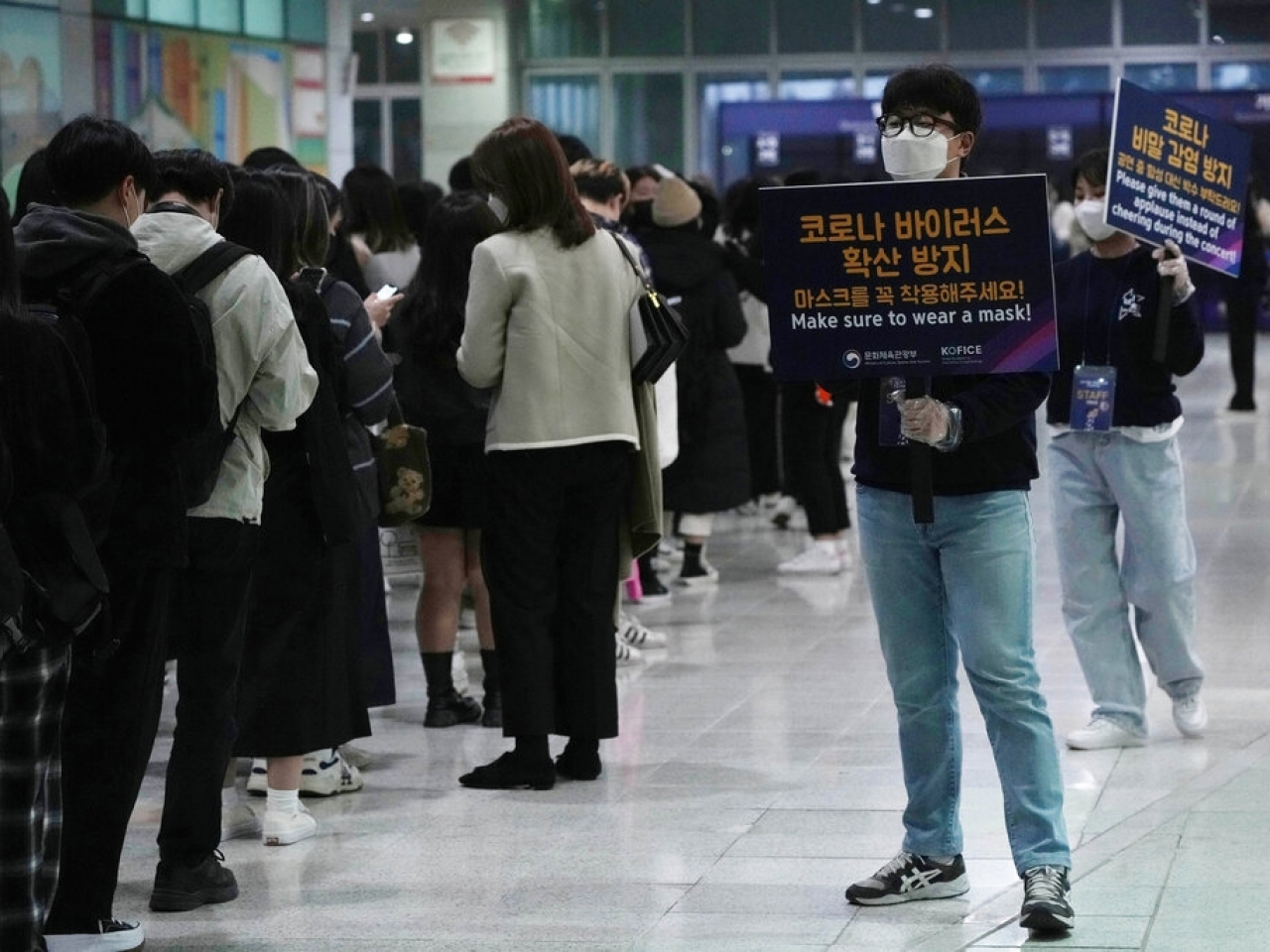 韓國民眾在公眾場合戴口罩防疫。(美聯社資料圖片)