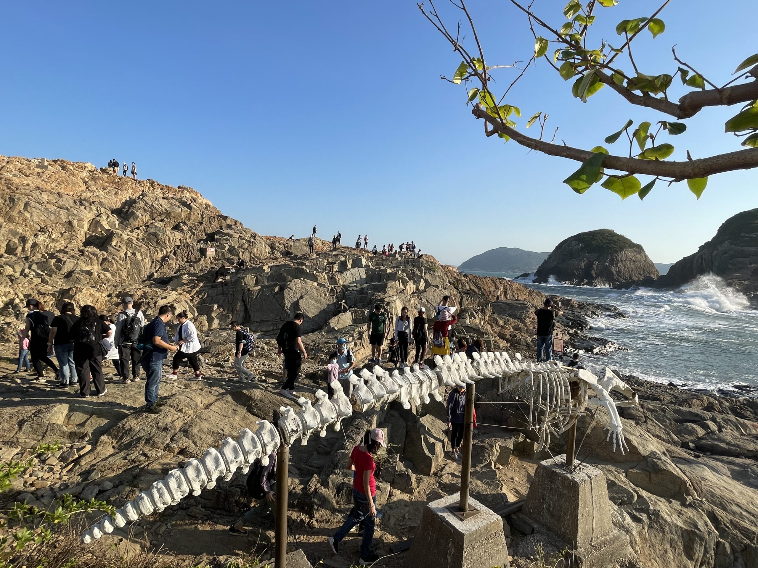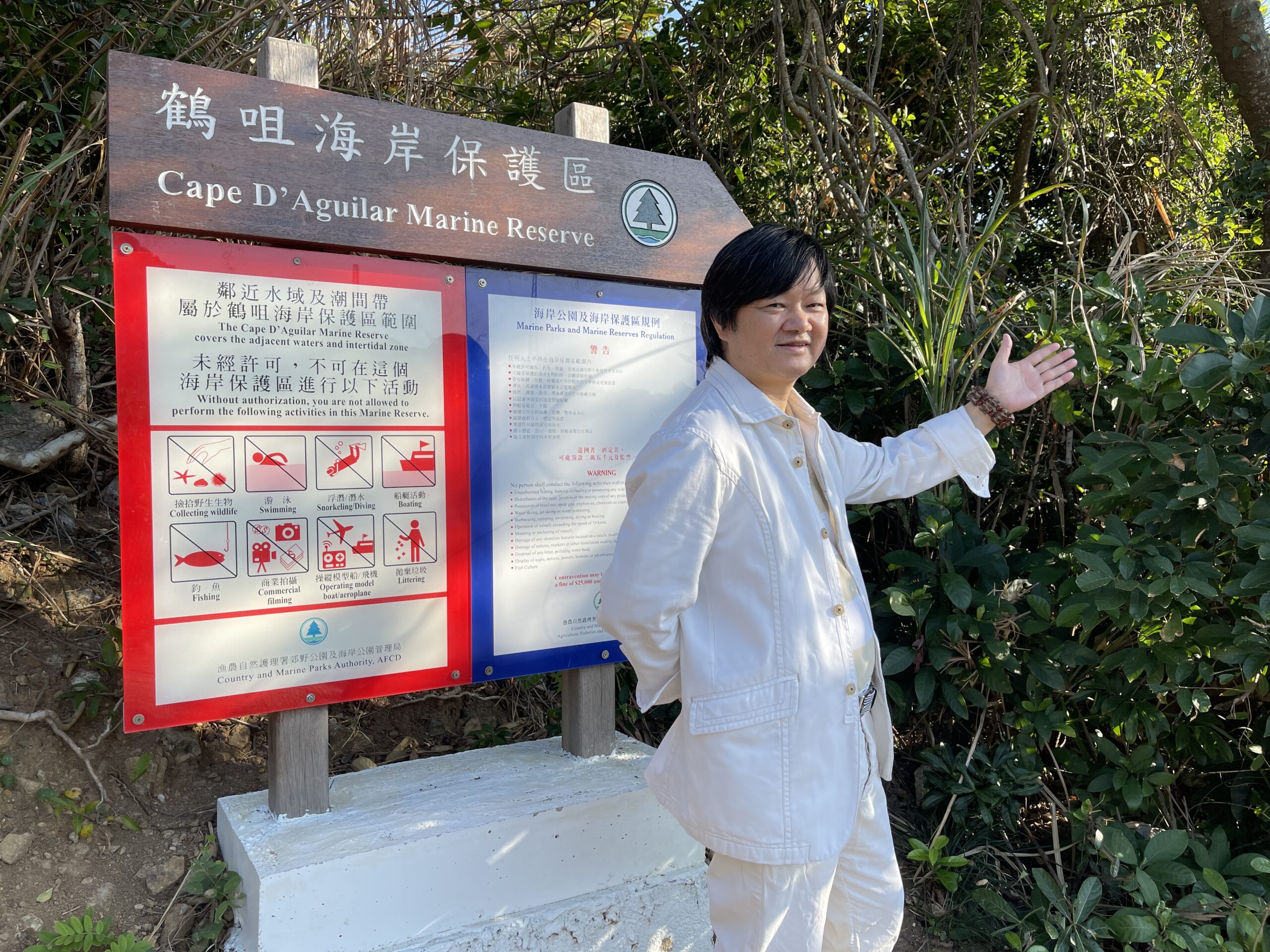同行的華僑大學駐港辦主任蔡錦鐘告訴我們,鶴咀半島位於香港島東南部,赤柱半島之東,石澳半島之南。這個地處港島一隅的小小半島,卻有著香港的第一座燈塔,还有1955年維港擱淺的鬚鯨标本,是香港迄今唯一的海岸保護區,有評論稱是最美港島東的鶴咀海岸保護區。