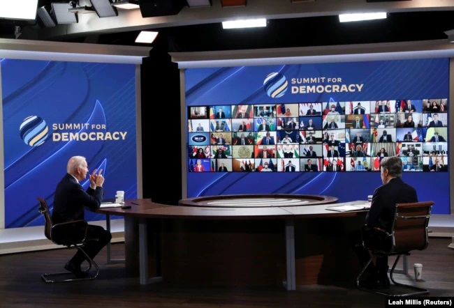 美國總統拜登召集全球110個國家的政府以及公民社會和私營部門領導人出席的線上“民主峰會”星期四上午拉開帷幕。拜登總統在國務卿布林肯的陪同下發表了開幕詞。