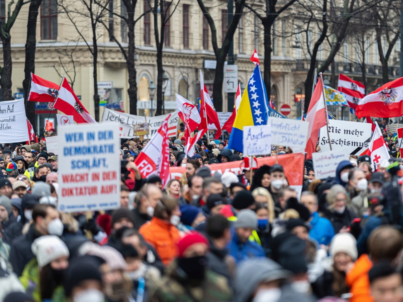 奧地利連續第4個周末有人上街,抗議當局的防疫抗疫措施,包括強制接種新冠疫苗。