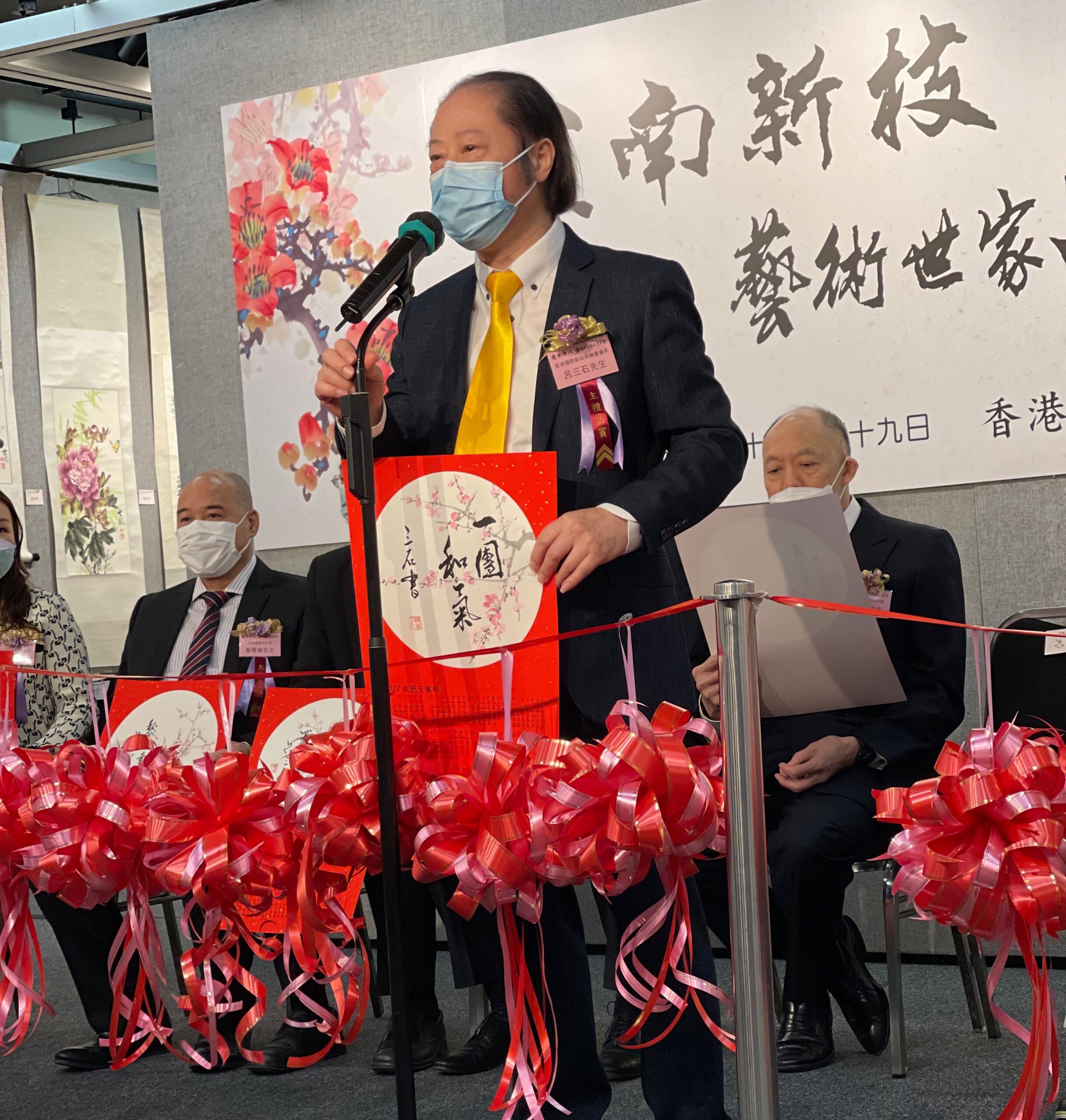 (中華新聞通訊社/中華時報記者林傑香港訊)12月18日下午,香港國際藝術家聯會在香港文化中心主辦的「嶺南新枝藝術世家呂三石書畫展」举行了隆重開幕典禮,中華時報傳媒集團主席、粵港澳大灣區藝術聯合會主席、香港美術學院院長曾曉輝博士,霍英東企業行政總裁霍震寰先生、黎明等商界領袖及藝術界人士及呂三石先生與他學生等出席了開幕式。