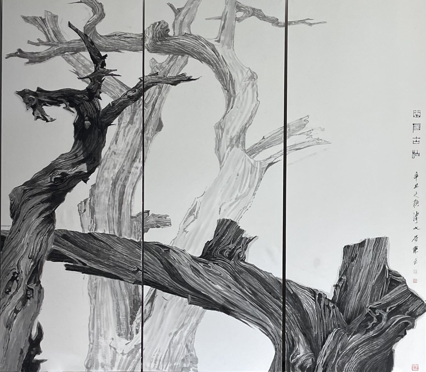 畫家對樹充滿了與生俱來的景仰、敬佩之情,將樹向下扎根、向上伸展的生存情態刻劃得入木三分,淋漓盡致!無論軀幹蟠虬的枯木殘枝,抑或蔥郁葳荑,枝繁葉茂的柏樹,滄桑中展現了不屈不撓的生命力,令人讚嘆不已!