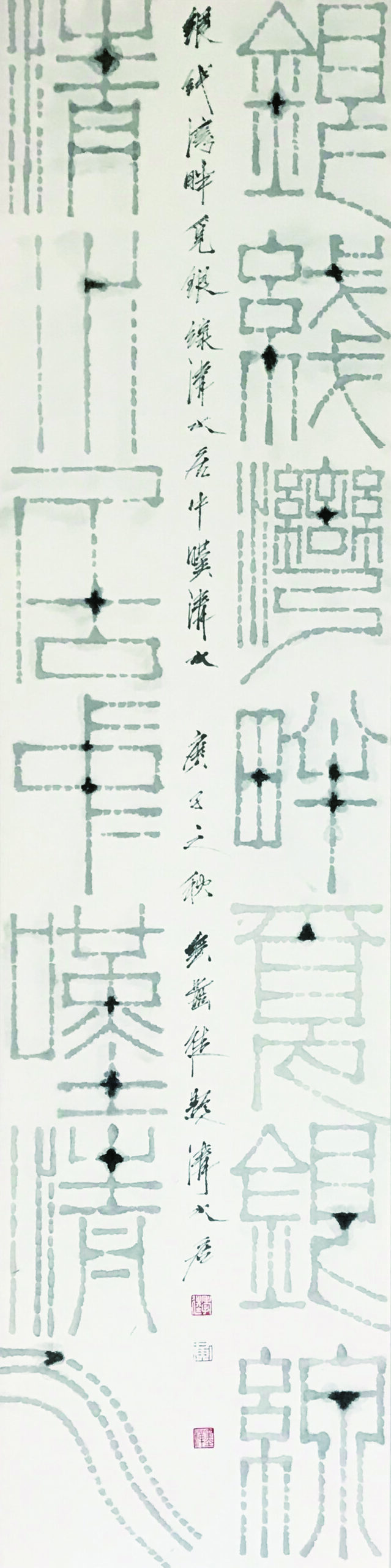 黃孝達為數不多的書法創作,試圖從字體的筆法變異中,尋求結構、線條、空間的意蘊,形成了一種「金石氣」的書寫,書法中見篆刻,字里行間又藏著畫,乍看一般,細觀則頗耐玩味!
