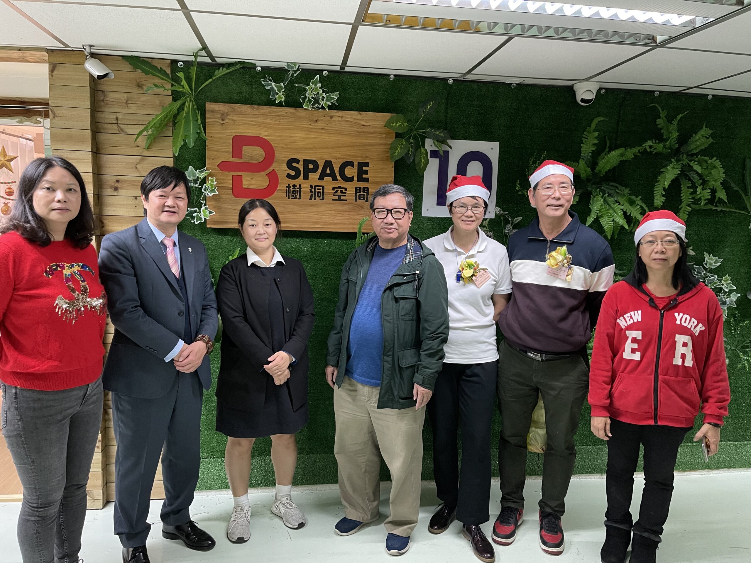 「華晴地產 」董事彭華雄先生 致開幕感言;鄭飛兒傳道致祝福語及聖誕頌詞;「舒痛傳福義工隊」宣佈成立禮并拍照留念;樹洞第一批租客簡述個人業務及聖誕新年意願,其中有位做「港餅」武漢小姐講述她入駐園區的感受及給每個出席者贈送她的產品。