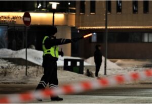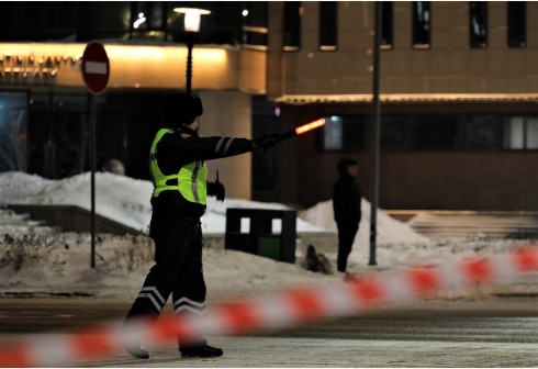 1月5日,警察在哈萨克斯坦首都努尔苏丹的市政府前执勤。