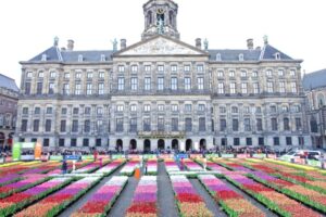 2020年1月18日,荷兰阿姆斯特丹的达姆广场摆放郁金香,纪念“国家郁金香日”。(新华社发,西尔维娅·莱德雷尔摄)