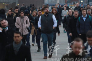 1月24日,早高峰通勤的人们走在英国伦敦的伦敦桥上。(新华社发 蒂姆·爱尔兰摄)