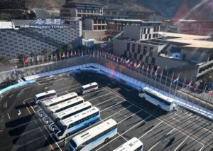 为了给世界各地参赛运动员、教练员和随队官员提供充分保障,冬奥村内设施细致入微。连通所有团组的暖廊、毗邻村口的缆车班车、连接高山滑雪中心和村内的雪道、品种丰富的特色美食,以及邮局、银行、美发等配套设施一应俱全。