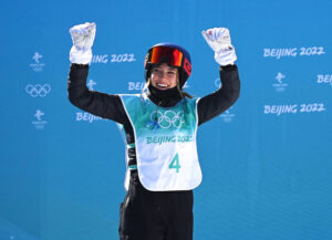 2月7日,谷爱凌在比赛后庆祝。新华社记者熊琦摄