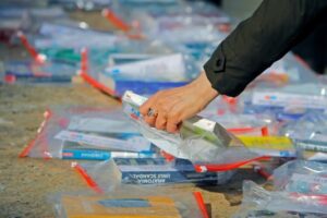 2月15日,在罗马尼亚首都布加勒斯特,市民挑选免费图书。(新华社发,克里斯泰尔摄)