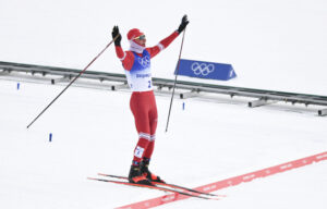 19日,俄罗斯奥委会队越野滑雪运动员亚历山大·博利舒诺夫在北京冬奥会越野滑雪男子50公里集体出发(自由技术)比赛的赛后伸出五只手指,面对镜头兴奋不已——史上首位在单届冬奥会上获得5枚奖牌的男子越野滑雪选手。