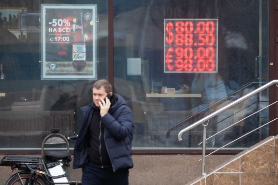 数据显示,美元对卢布汇率2月28日一度暴涨超过40%,至创纪录的1比119。本月以来,美元对卢布汇率已上涨约50%。