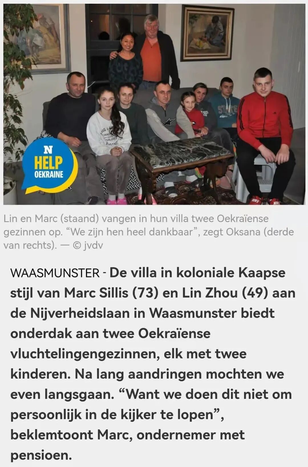 在呼吁发出后,大家积极响应,腾出了8千多床位。昨天,荷语日报《Het Nieuwsblad》刊出了一篇讲述Waasmunster市一对夫妇热情接收两家(8人)乌克兰难民的报道。