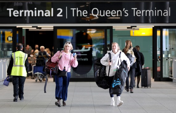 3月18日,旅客走在英国伦敦希思罗机场内。(新华社记者李颖摄)