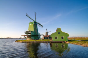 这是3月26日在荷兰赞丹拍摄的桑斯安斯“风车村”景色。(新华社记者张铖摄)